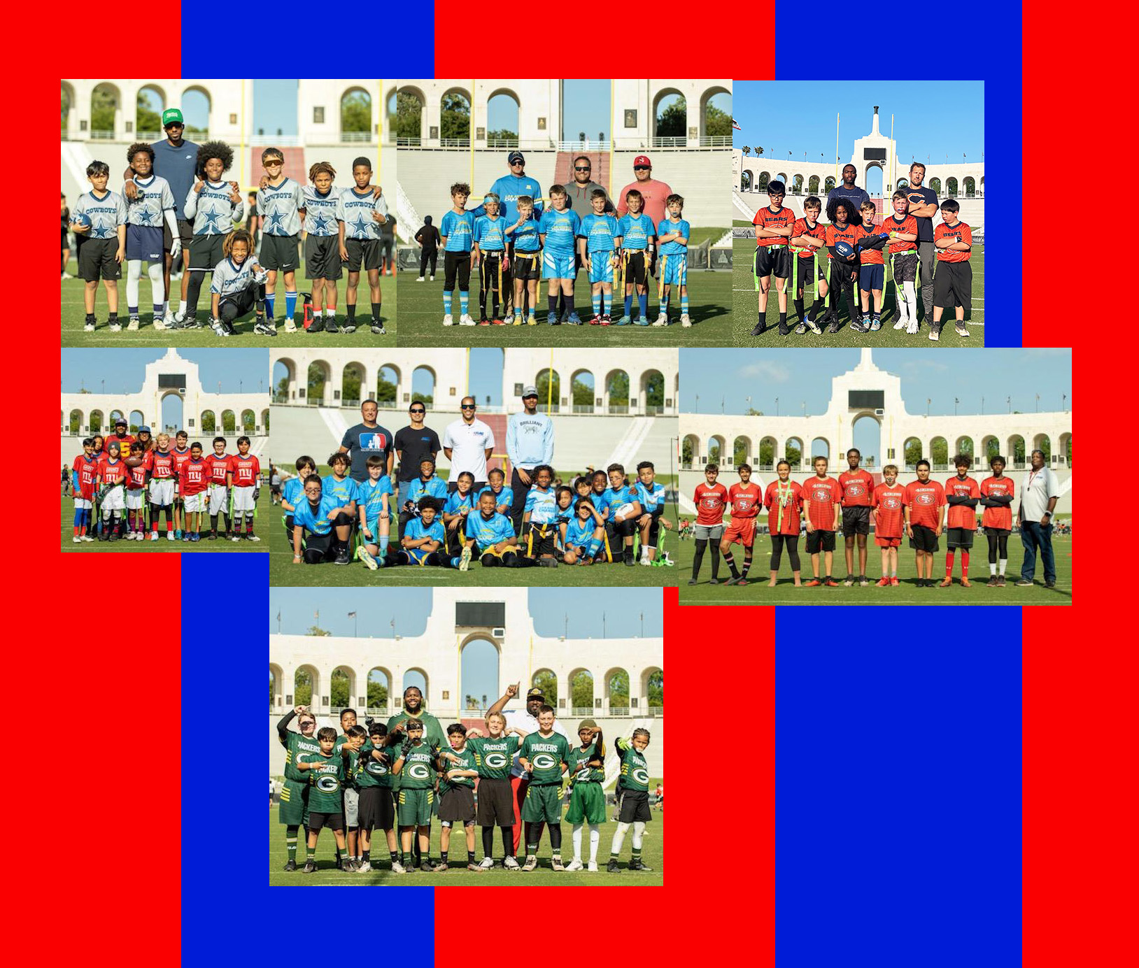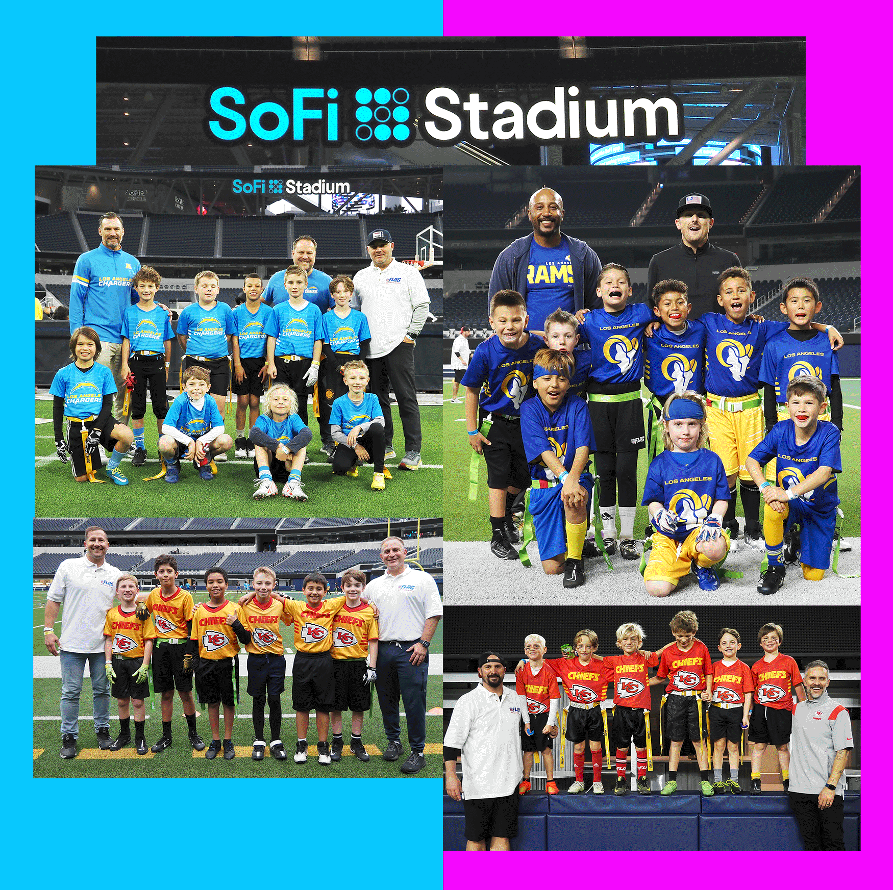 Teams are officially branded with NFL Flag logos, featuring fan-favorite franchises like the LA Chargers, LA Rams, Cowboys, Raiders, and more!